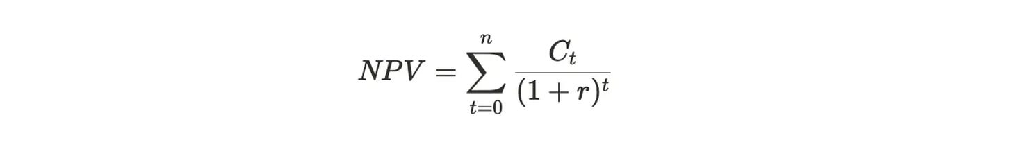 NPV = \\sum_{t=0}^{n} \\frac{C_t}{(1+r)^t}